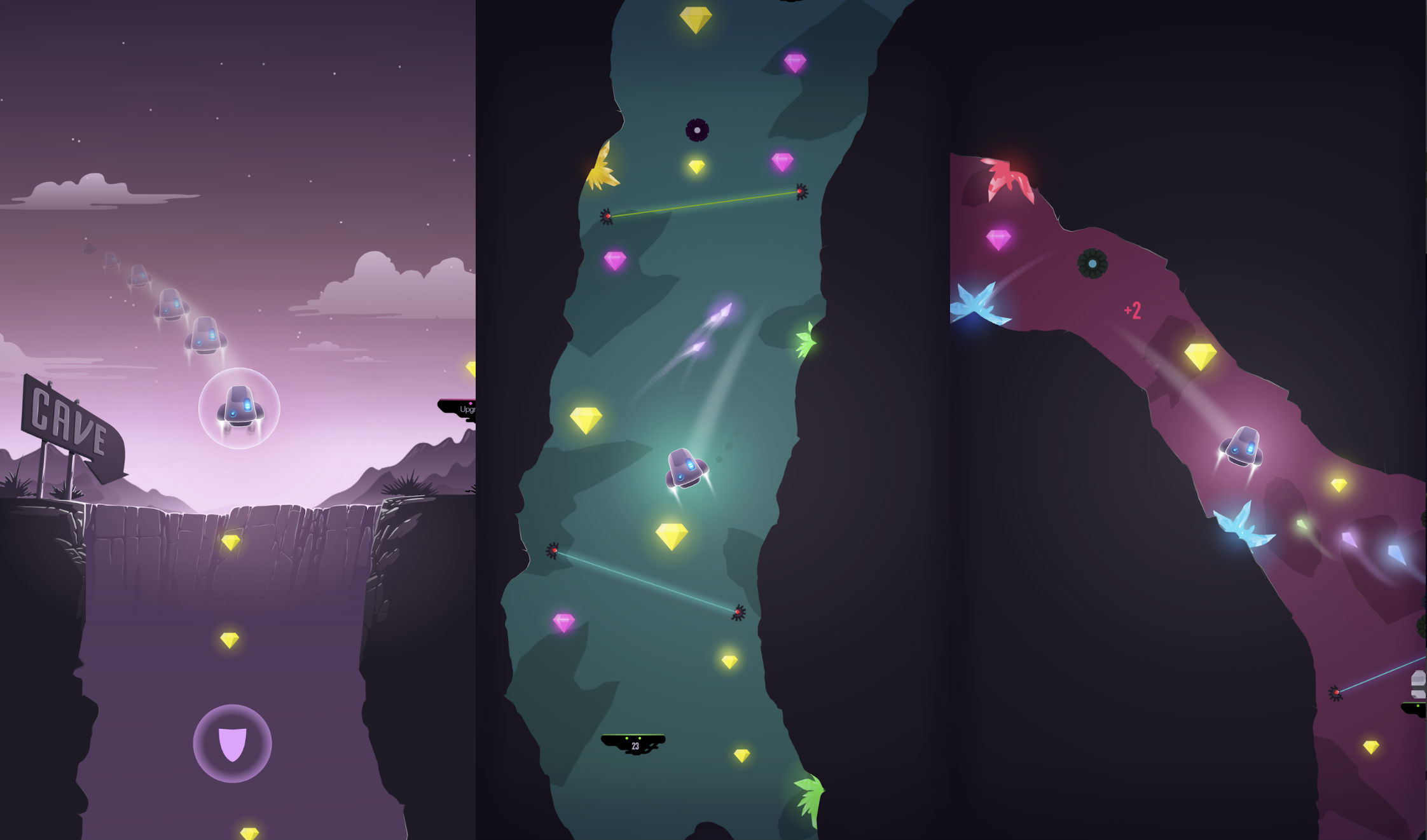 Flyg in i grottan och utforska dess hemligheter. Din skicklighet som pilot kommer att bli det enda som kan rädda dig! Starta motorerna, låt turbinerna snurra och ta in siktet mot nästa plattform.
